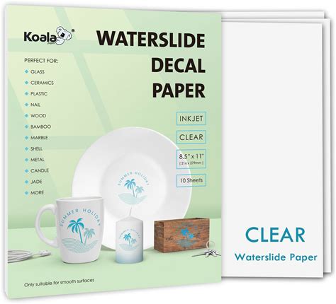 Koala Waterslide Decal Paper INKJET CLEAR, 20 Sheets 8.5X11 Inch Water Slide ...