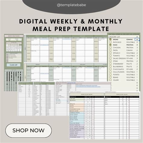 Weekly Meal Planner Spreadsheet Template • with Automated Shoppi
