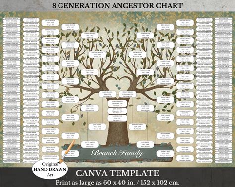 8 Generation Large Blank Family Tree Genealogy Chart Digital Instant Download Editable Ancestry Tree Poster TUTIO