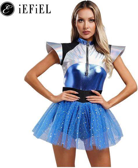 Woman's Outerspace Astronaut Alien Robot Cosplay Costume Metallic Cap Sleeve Tutu Dance Dress For