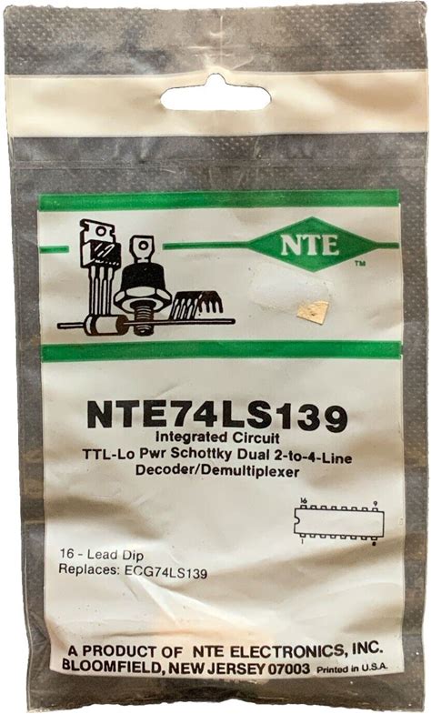 NTE74LS139 IC TTL-Lo Pwr Schottky Dual 2 To 4 Line Decoder/Demultiplexer DIP16