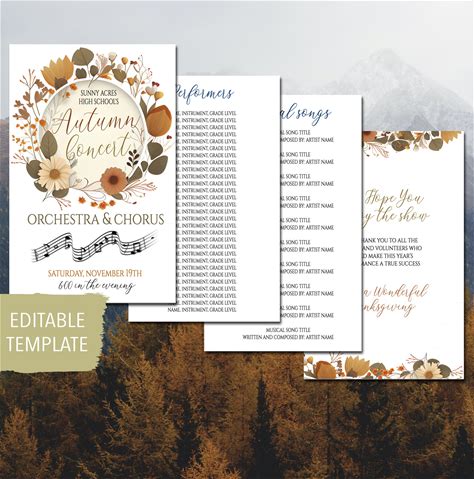 Fall Concert Program Template, Printable High School Autum Concert, Chorus Band Thanksgiving Show Play, Piano Dance Recital, EDITABLE