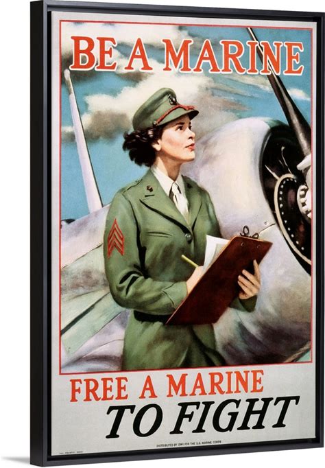 Be A Marine - Free A Marine To Fight Poster | Large Stretched Canvas, Black Floating Frame Wall Art Print | Great Big Canvas