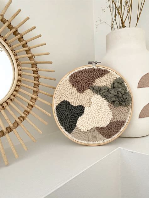 Abstract Fiber Art - Mixed Techniques On Hoop (Punch Needle, Weaving And Embroidery) - Nature