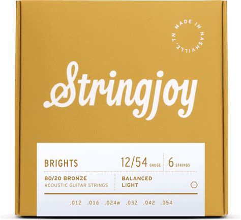 Stringjoy 12-54 Light Gauge Brights - 80/20 Bronze Acoustic Guitar Strings