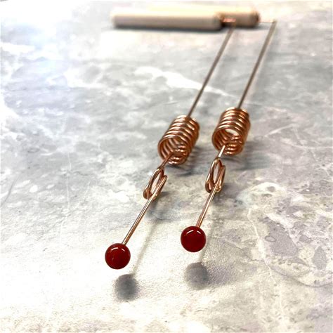 2 Copper Dowsing Rods With Carnelian | Pair Of Divining Rods | Divination Rods | Sacred Cubit 144 Mhz