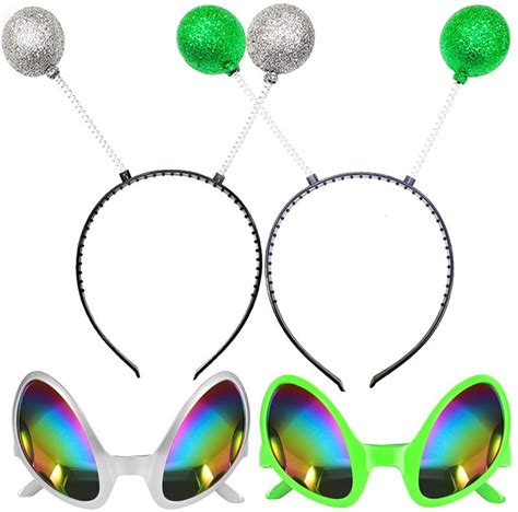 Goenb Pack Of 4 Alien Headband, Alien Glasses, Alice Band, Alien Headband, Alien Headband Alien Costume Accessory For Ad