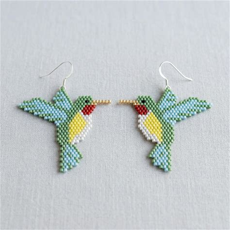 Hummingbird Brick Stitch Beaded Earrings Pattern | Miyuki Delica 11/0 Seed Bead Bird Jewelry PDF Tutorial | DIY Nature Craft Design
