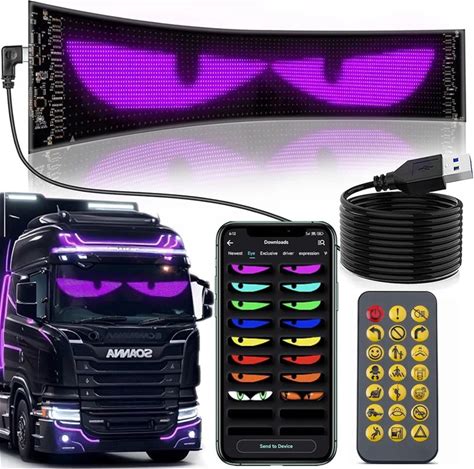 90cm Ultra-Thin Flexible Windshield Devil's Eyes LED Eyes APP Bluetooth Control DIY LED Matrix Pixel