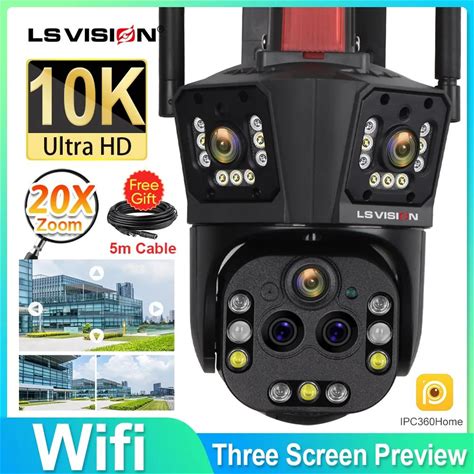 LS VISION 10X Optical Zoom Three PTZ Lens 4G Solar Camera 20MP Three Screen Wifi Human Auto Tracking