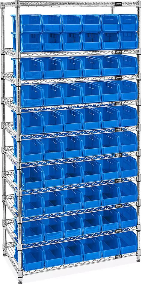 Wire Stackable Bin Organizer With 18X16 1/2X11" Blue Bins - ULINE
