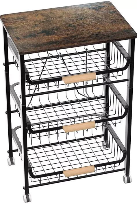 Seabrook Espresso 3-Tier Storage Unit With Natural Baskets