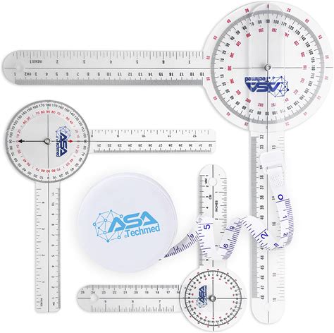 ASA TECHMED Goniometer Set 4 Pieces 12", 8", 6" Body Measuring Tape - Physical Therapy, Occupational Therapy, Fitness, Medical Protractor Angle Ruler