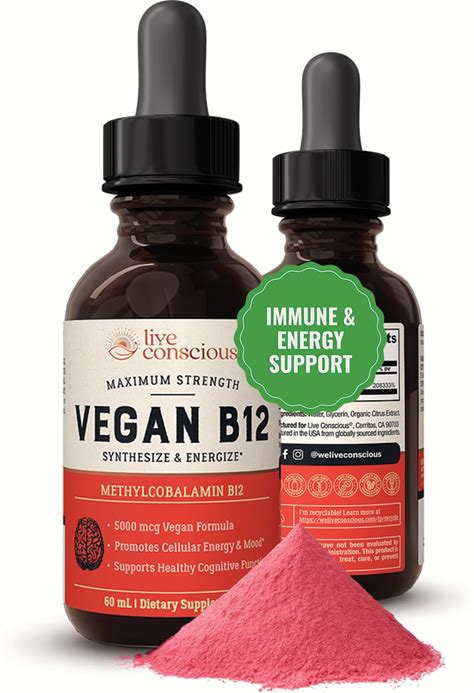 Live Conscious Vegan Vitamin B12 Sublingual Liquid Drops | Methylcobalamin Max Strength B12 5000Mcg Formula | Vegan B 12 Vitamin Support Energy |