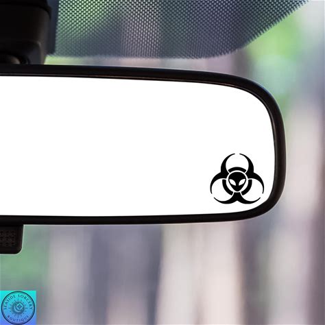 Alien Decal, Biohazard Symbol, Space, UFO, Rearview Mirror Decal, Mini Decal, Tiny Decal, Indoor/Outdoor Vinyl, Many Colors, Free Shipping