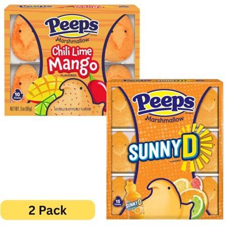 Peeps Marshmallow Candy Variety 2-Pack Sunny D Citrus (4.5 Oz) & Chili Mango Lime (3 Oz) Limited Edition Easter Candy 7.5 Oz Total